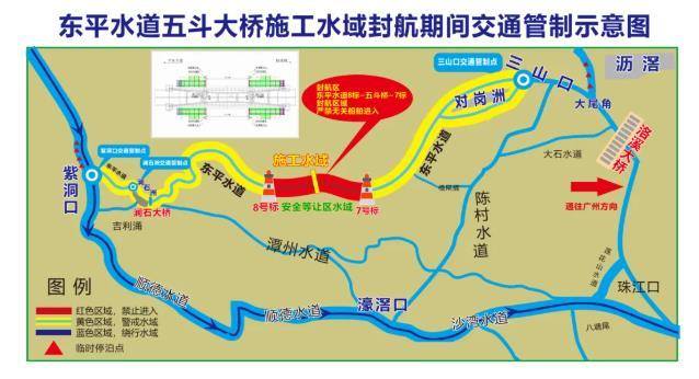 6月6日,记者从佛山海事局获悉,为保障东平水道五斗大桥重建项目施工期间通航环境安全,海事部门将于五斗大桥吊装施工作业期间,对东平水道相关水域实施封航交通管制。