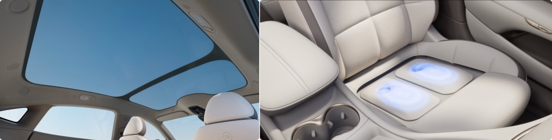 得益于超大的天幕,视野通透、开阔是坐在全新智己L6的最直观感受。车内座椅也对乘客身心进行了周全考虑,其搭载的贝果舒压系统,主驾座椅支持坐垫软硬可调,并可调至最软档位享受最温柔的包裹,长途驾驶时则可调硬档位增强支撑,配合双气垫波浪式舒压设计,感受靠背8点SPA按摩,缓解腰背压力。