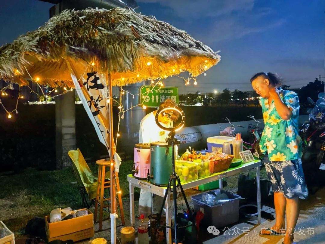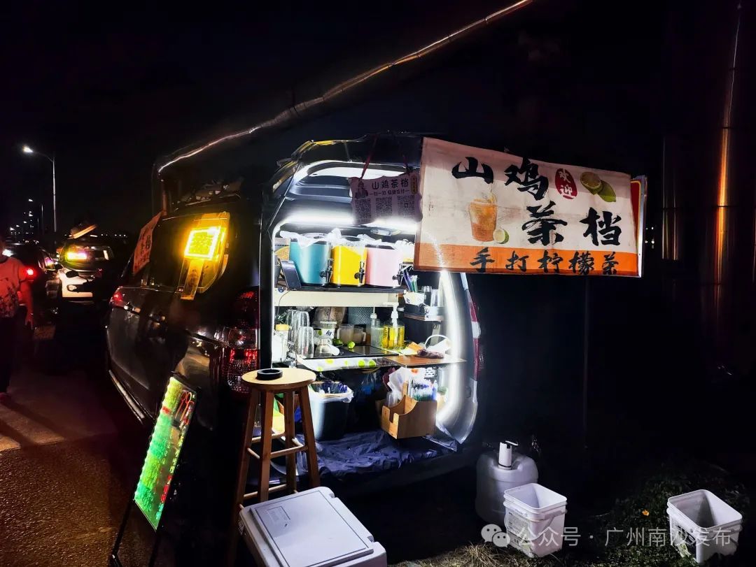 待到傍晚时分,在东涌官坦农业公园旁,陆续有车尾箱摊主支起了柠檬茶摊档,吹着江风、听音乐、喝柠檬茶,好不惬意。来自中山的车尾箱摊主何小姐是其中一员。何小姐非常喜欢做茶饮,此前一直在中山创业,这次她听到弟弟介绍说东涌连片的向日葵盛开后,立刻就开车到东涌了。
