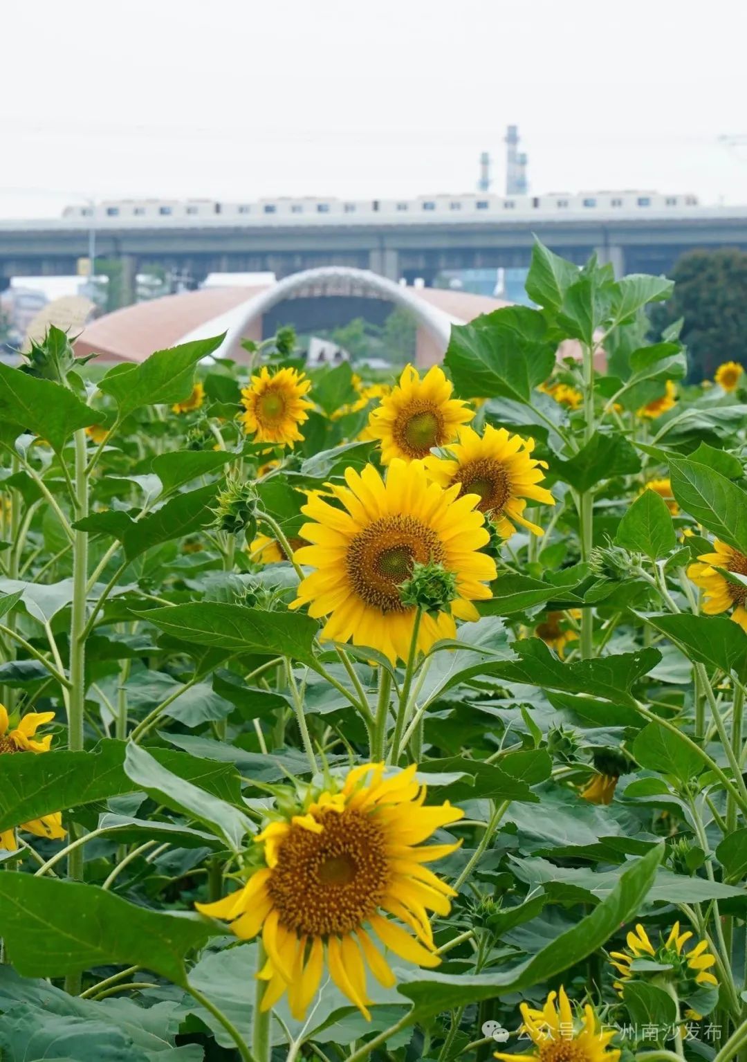 金色的向日葵错落有致,竞相绽放。微风吹拂,一个个“小太阳”在风中摇曳,洋溢着满满的生命力。无论是在清晨拍下蓝色调的“向阳花开”,还是在傍晚拍下向日葵、晚霞与地铁同框的一幕,都是又美又出片!