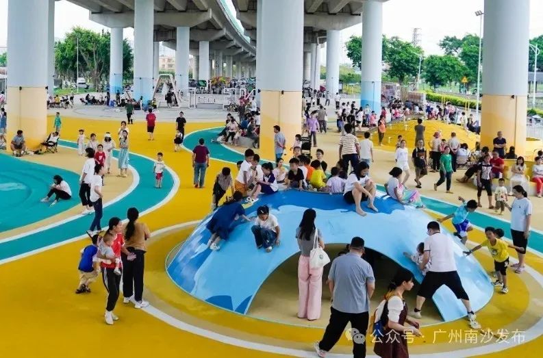 面积约9000平方米,马克村桥下公园深挖本土文化,以东涌水乡文化、醒狮文化为灵感来源,打造集文化展示区、儿童探索区、综合健身区于一体的适合全年龄段的活动休憩空间,成为又一网红打卡点。