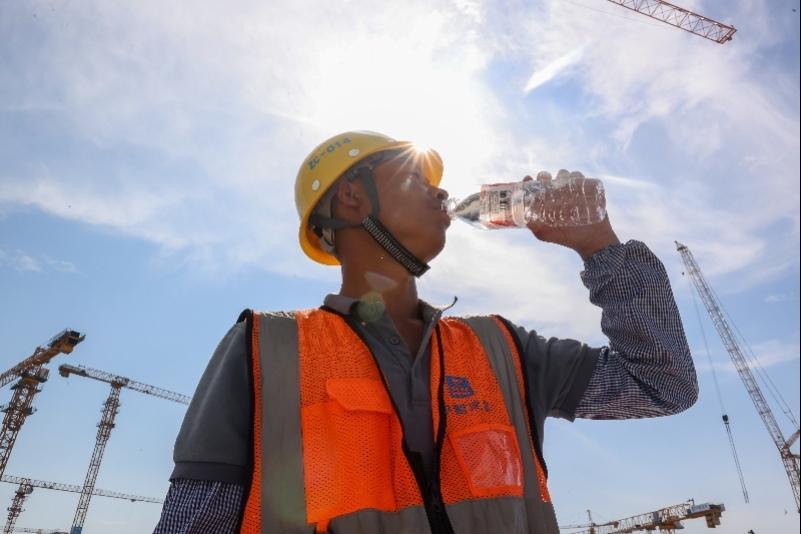 为保障户外工作者的身体健康,相关单位与社会各方积极提供多种形式的防暑降温措施。新华社供图
