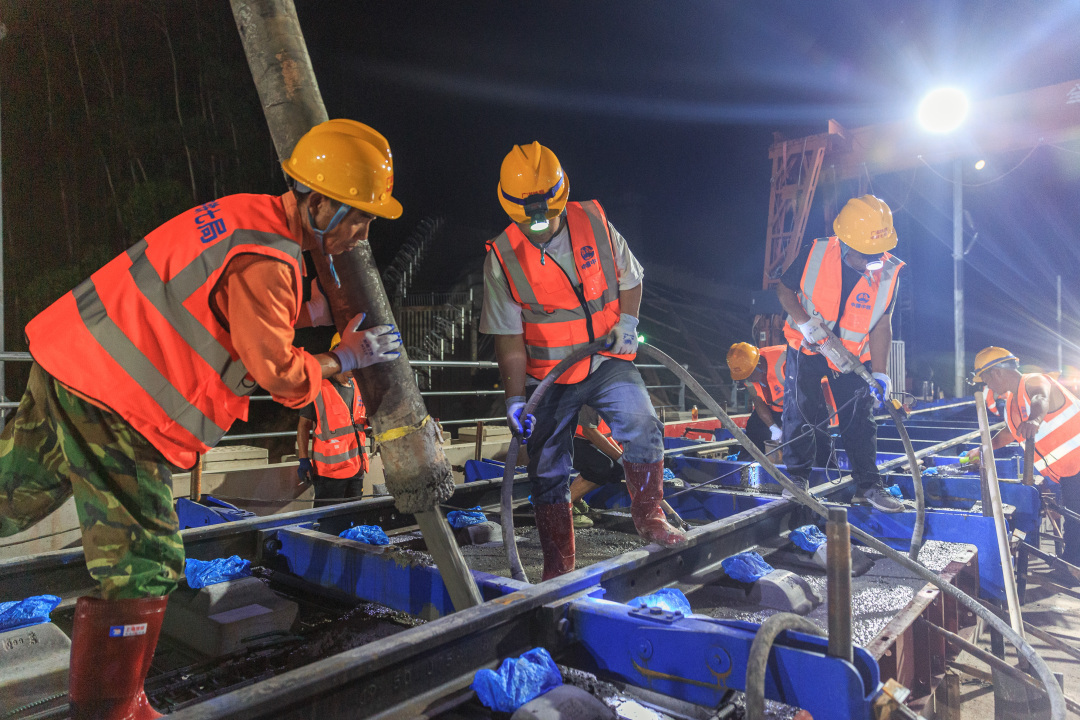 目前,广湛高铁十二标桥梁、路基、隧道主体工程均已全部完成,无砟轨道多段同步施工已全面展开,确保如期达到铺轨条件。