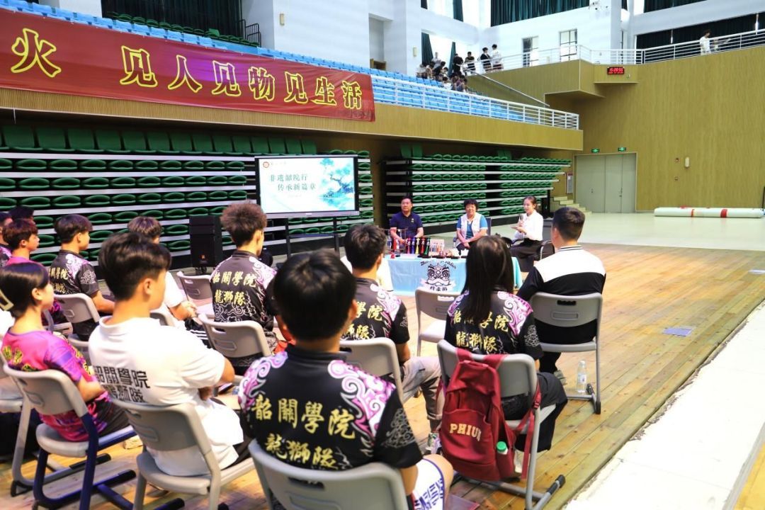 一场关乎根脉、关乎未来的非遗传承盛宴,就此拉开帷幕。在“对话非遗”环节,赵伟斌以“广东醒狮的昨天、今天、明天”为主线,深入解读广东醒狮的历史发展脉络与文化价值精髓,讲述每个时代所赋予醒狮的不同的文化精神、艺术内涵和传播方式。他以鲜活案例诠释非遗的当代价值,现场学子凝神倾听,深受启迪。