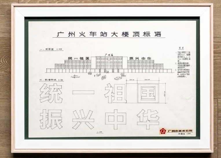 ↑1986年广州火车站“统一祖国 振兴中华”图样(何勇当设计)