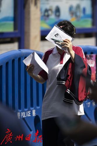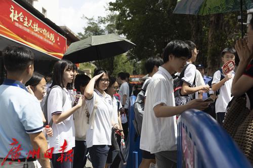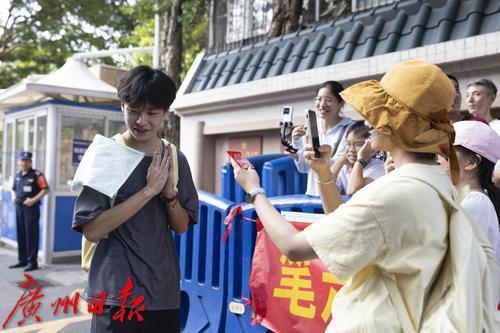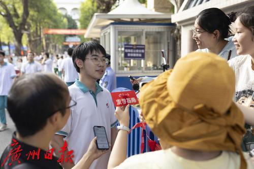广州日报记者采访六中考点考生。