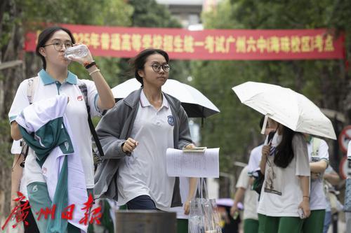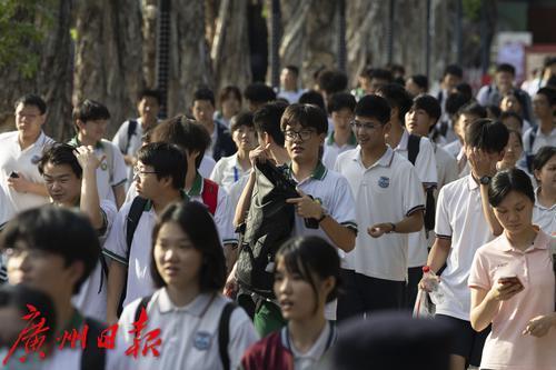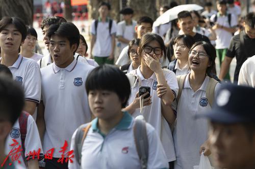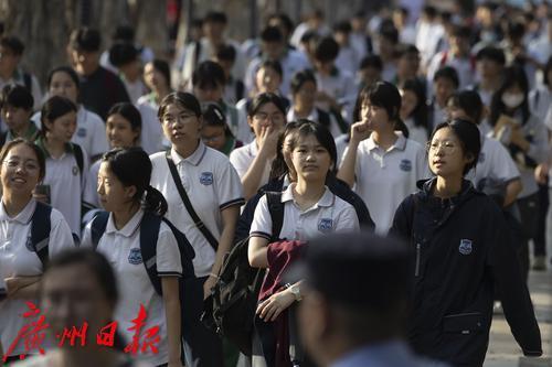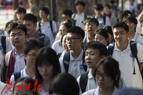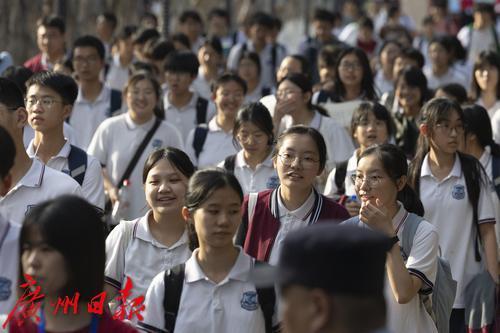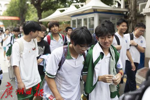 物理/历史考试结束后,广州市第六中学考点考生有序走出考场。