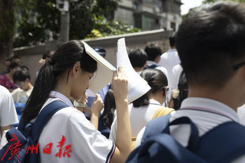 外语考试即将开始,广州市第六中学考点考生们开考前仍然在背诵单词。
