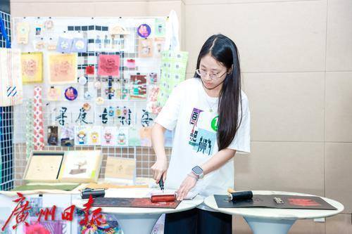 电子科技大学中山学院“筑梦圣狮”突击队现场制作“乡潮”文创。