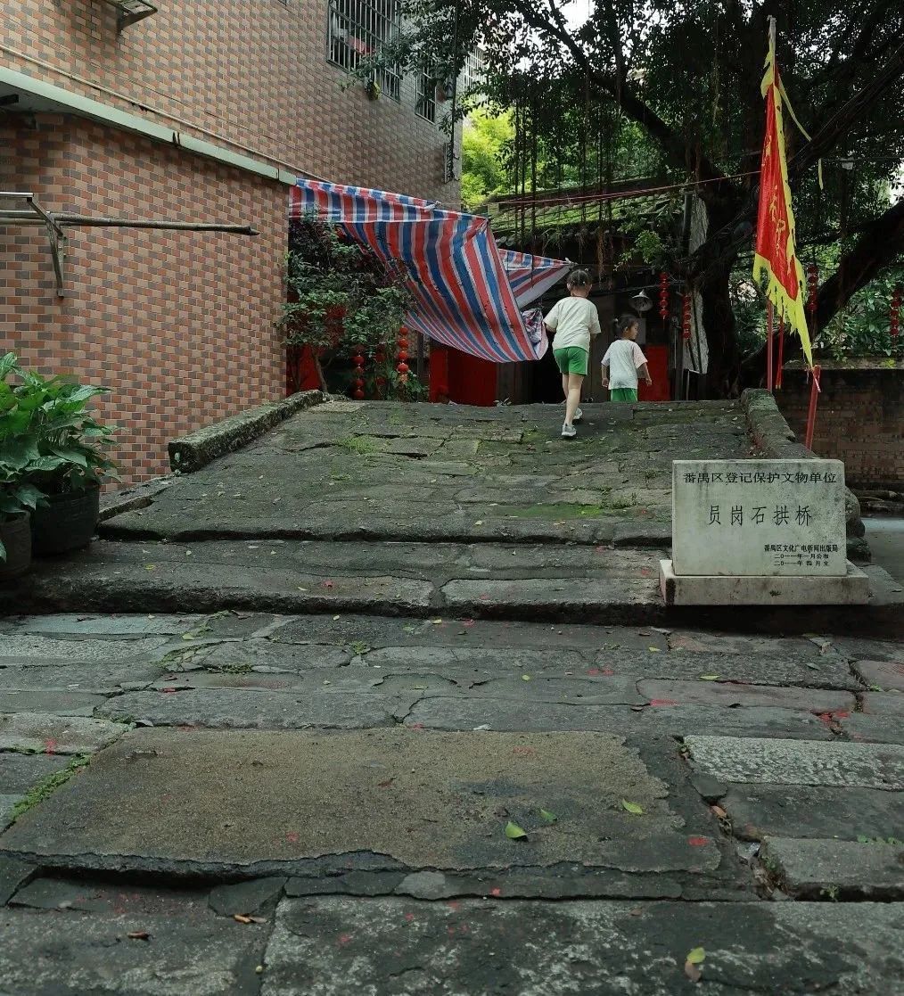 明代始建、清代重修的员岗石拱桥,以红砂岩筑就单孔桥身,跨越数百年风雨,至今仍稳固如初,不仅是交通要道,更串联起往昔与今朝。