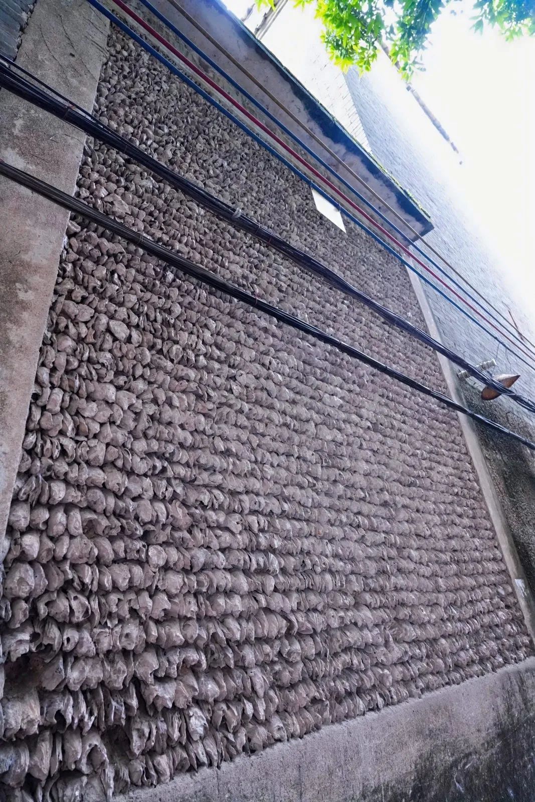 丛桂坊大街11号、9号民居,红砂岩墙基沉稳厚重,青砖墙古朴典雅,镬耳封火山墙如飞鸟展翅,三层建筑错落有致,尽显清代岭南建筑韵味。而蚝壳墙更堪称建筑奇观,珠三角盛产的生蚝壳,与黄泥、红糖、蒸熟的糯米巧妙结合,垒砌而成的墙体不仅隔音隔热、坚固耐用,还兼具防盗功能,早在明清时期便被屈大均记载于《广东新语》,展现着古人就地取材的生存智慧。