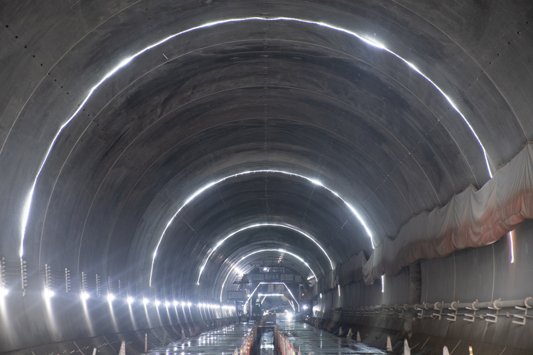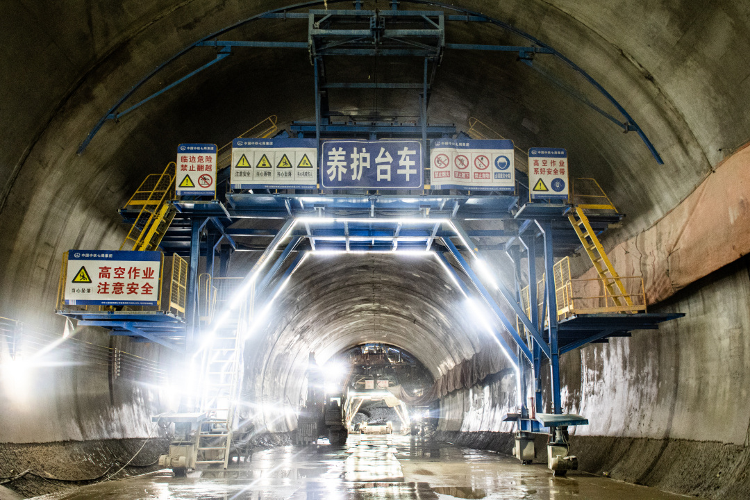 针对复杂地质难题,项目团队遵循“短进尺、弱爆破、强支护”的原则,结合超前地质预报、监控量测和“爆破强管理”制度,动态优化开挖工法。始终坚持“智能建造+数字管理模式”,以“装备智能化、工序数字化、管控信息化”破解施工难题,通过智能二衬台车、喷淋养护台车、自动走行栈桥等自动化智能设备缩短衬砌及其他工序周期,通过数字化平台实时监控施工全流程,持续更新日报明晰各项工序进展,成功实现施工安全零事故、工程质量零缺陷的“双零目标”,高效完成施工生产任务。