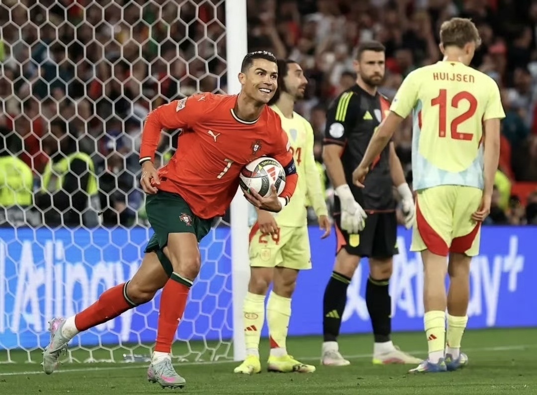 在万众瞩目的葡萄牙巨星C罗与西班牙新锐亚马尔的PK中,缺乏经验的后者被防守得毫无脾气,全场21次丢掉球权,前者则在40岁的时候拼出国家队决赛首球,为葡萄牙队力挽狂澜。据悉,这是C罗时隔7年再次攻破西班牙队的球门,上次是2018年世界杯的“帽子戏法”,他职业生涯至今10次对阵西班牙队共打进4球、助攻1次。而葡萄牙队的第二座欧国联冠军奖杯,也是C罗夺得的个人第36项冠军,其中俱乐部33个、国家队3个。这是C罗第4次随葡萄牙队挺进国际大赛的决赛,最终是3次夺冠,包括2016年的欧洲杯、2019年和2025年的欧国联。而这也是C罗第一次在国家队大赛决赛中进球,他职业生涯至今出战39场俱乐部+国家队决赛,共打进24球、助攻2次。