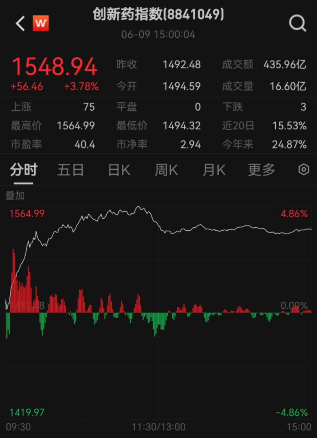 当日市场关注的焦点无疑还是创新药概念股,舒泰神、常山药业、海辰药业、睿智医药、联化科技、众生药业等多股涨停。自5月中旬以来,创新药概念股持续走强,特别是5月底以来,相关概念股加速上涨。
