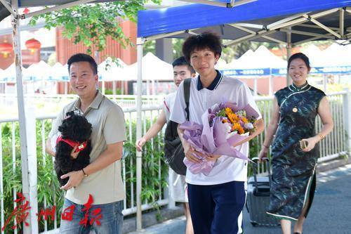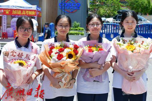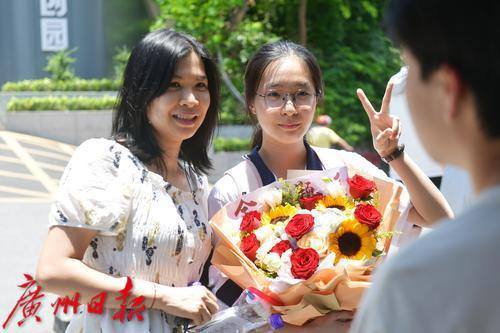 6月9日,全国高考第三天,广州市第八十六中学考点,中午地理科考试结束后,一部分考生就完成了本次高考的全部科目考试,家长带着鲜花在门口等待考生出来。