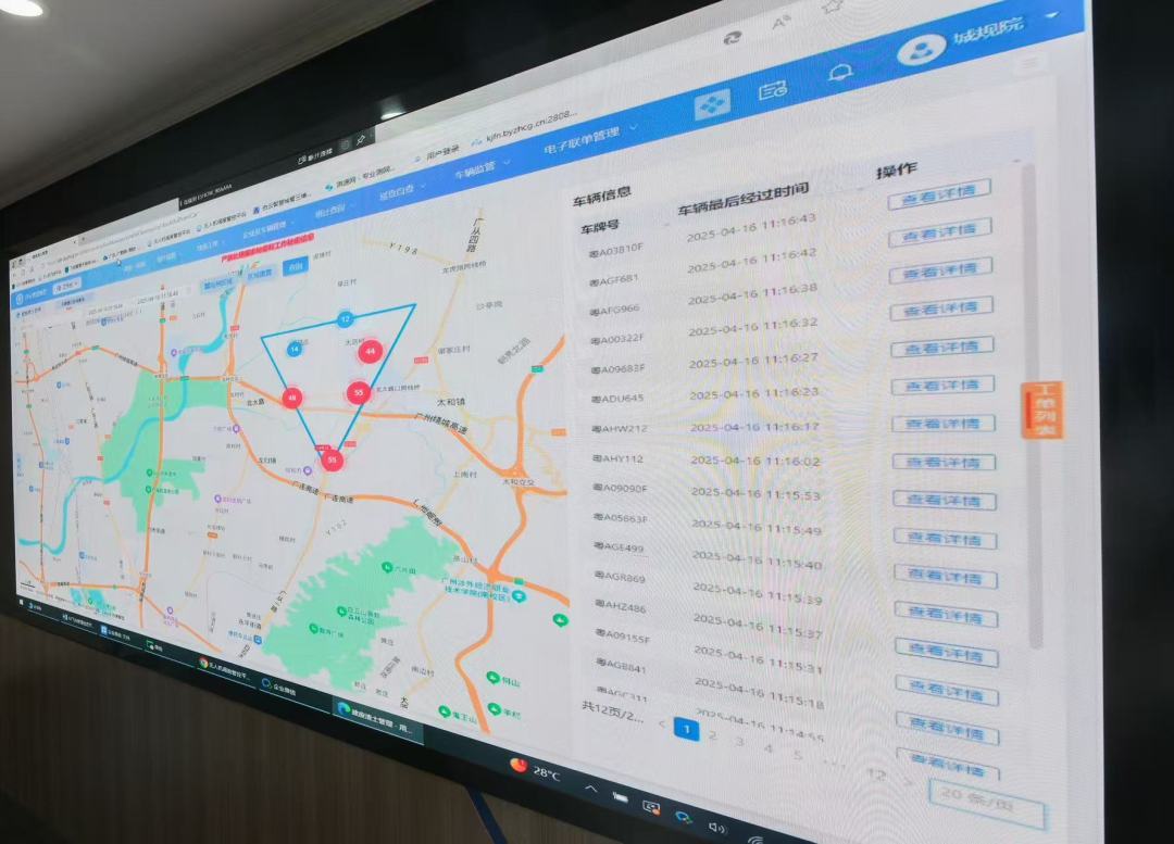 据介绍,目前,白云区城管局已在辖内153个重要卡口,安装450支具有AI算法功能的智能摄像头,可24小时全天候识别并抓拍建废运输处置违规行为。同时,该局开发“渣土车通行查询”功能,将目前全市1万余台渣土车相关信息全部录入,并进行动态更新。