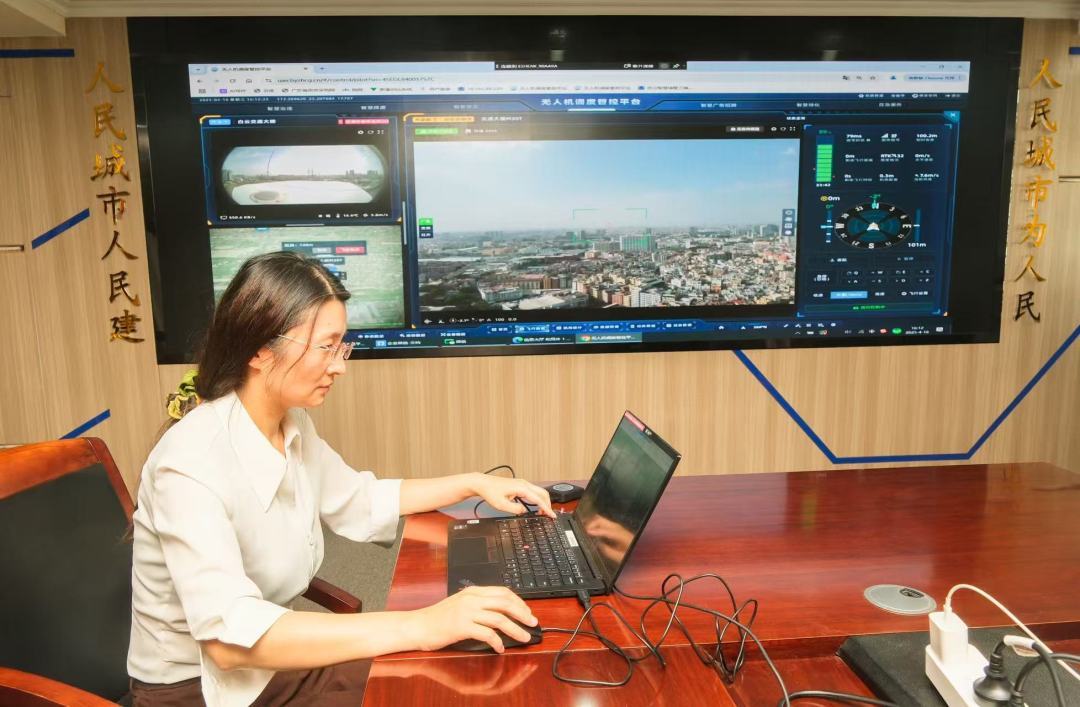 白云区城市管理监控指挥中心主任李峰介绍,该局谋划布局“4台固定翼无人机+25台旋翼无人机”体系,创新“5G+无人机+AI”低空巡检模式,构建了全方位、立体式、智能化的低空遥感监测网,实现“一键起飞”自动巡检、监控画面高精度实时回传、影像资料高速下载、一次采集多任务目标,形成“智能航飞——AI自动发现——线索推送——处置监督”闭环管理,打造城市治理现代化新引擎,让各类违法问题无处遁形,守护绿色的人居环境。
