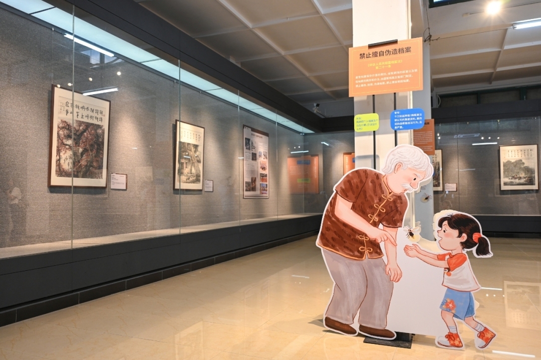 展览精心运用档案原件(复制件)、口述历史影像、历史图片、艺术家基于档案素材的书画创作、多媒体视听、场景复原、互动游戏及《档案法》漫画科普等多种形式,将静态的馆藏资源转化为沉浸式的文化体验。