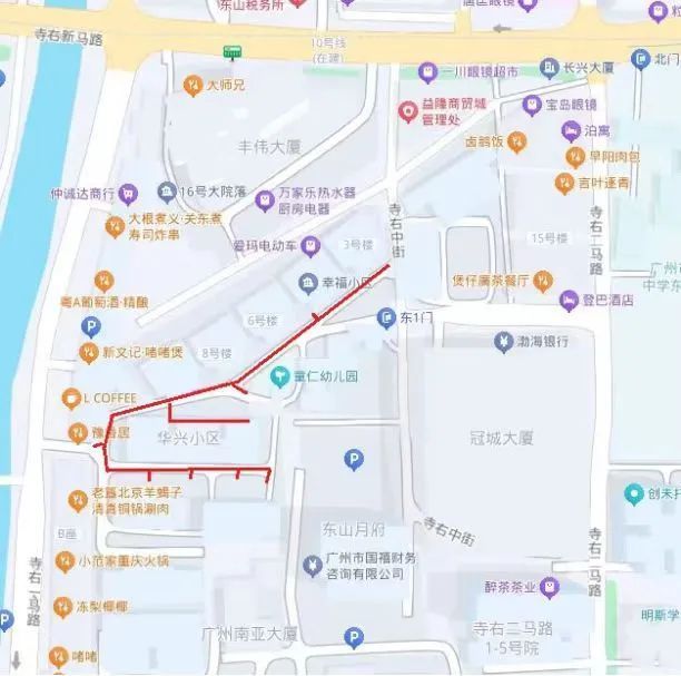 施工路段:越秀区寺右一巷华兴小区、寺右中街小区、丰伟大厦部分车行道、人行道,全长约818米。