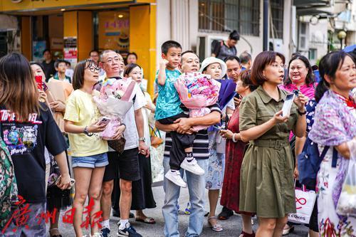 走出考场的考生和穿着旗袍前来接考的家长合影留念。