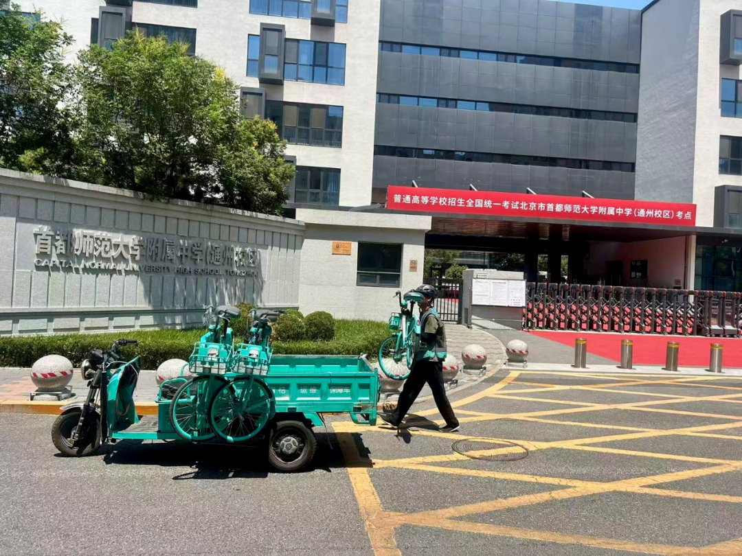 滴滴青桔运维人员及时调度车辆,确保考点周围不淤积