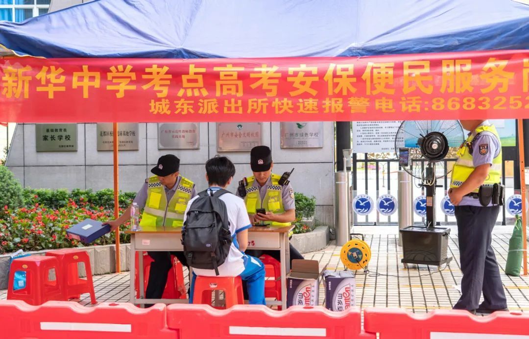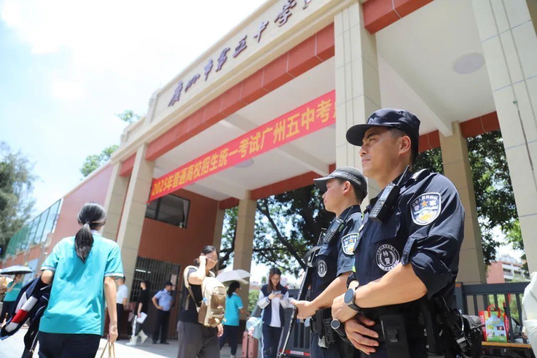 高考期间,广州警方在考点及周边范围,每天投入安保力量8500余人,强化显性用警,针对性部署以考点辐射周边的社会面整体治安防控措施,加强巡防守护,确保社会面秩序平稳;在全市各考点周边和主次干道布置242辆拯救车,及时处置各类交通事故和故障车辆;组建146组交警铁骑“护考小分队”,为考生和考务人员提供应急送考服务。