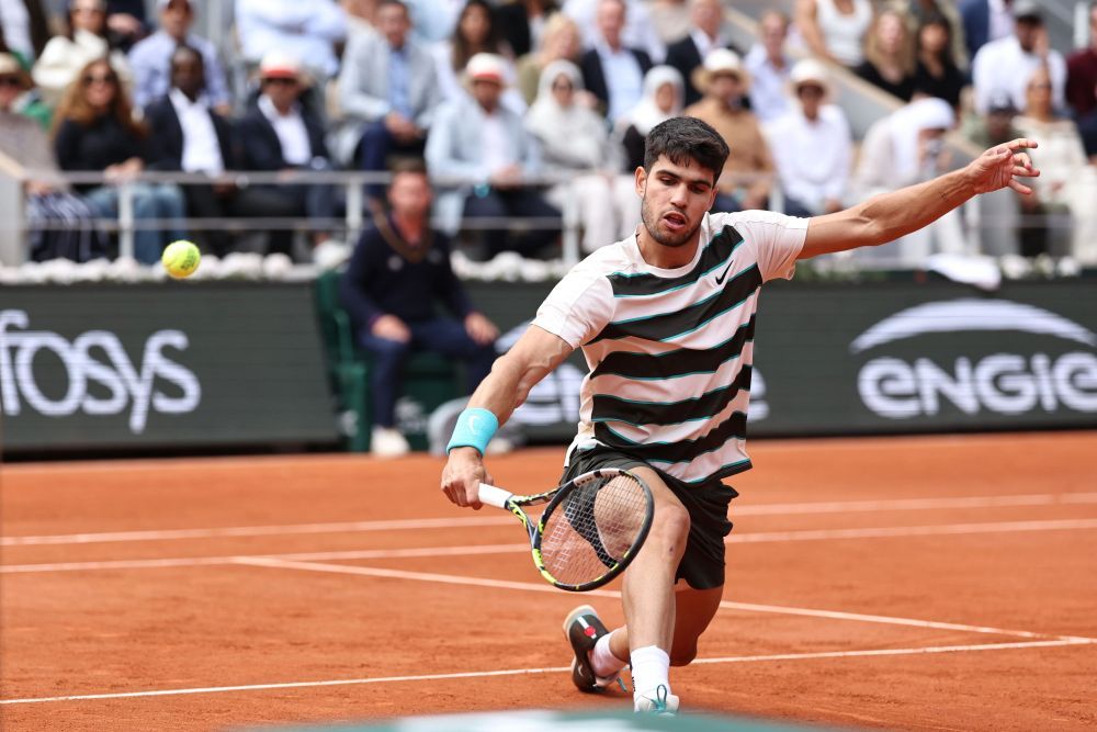 6月8日,阿尔卡拉斯在比赛中回球。新华社记者 李京 摄