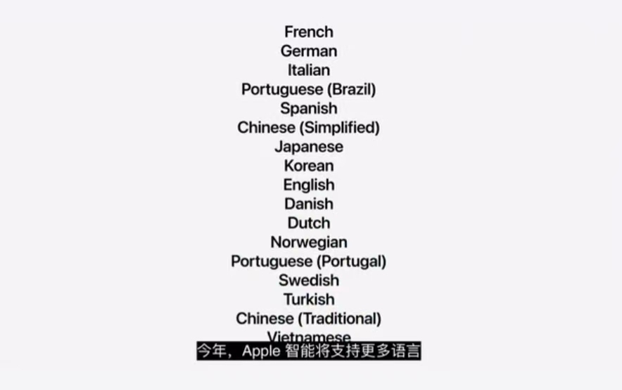 值得一提的是,苹果宣布,Apple 智能在今年内将支持更多语言,其中包括繁体中文。