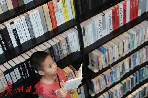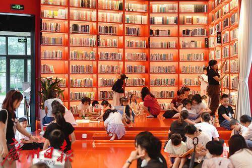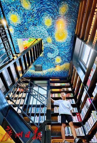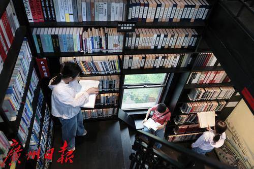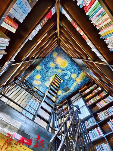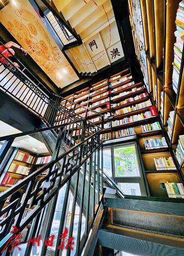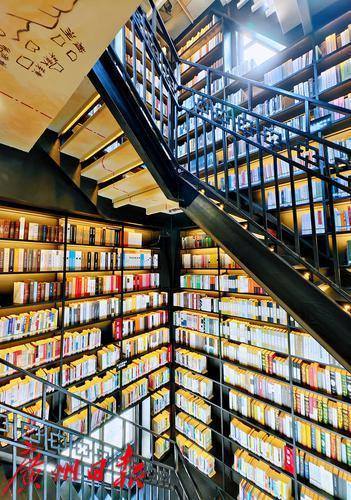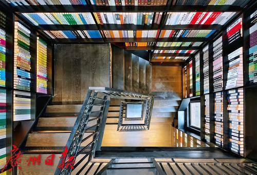 塔楼藏书区以立体空间设计,黄黑配色、纵深15米的五层塔楼内,陈列了7000余册书籍。