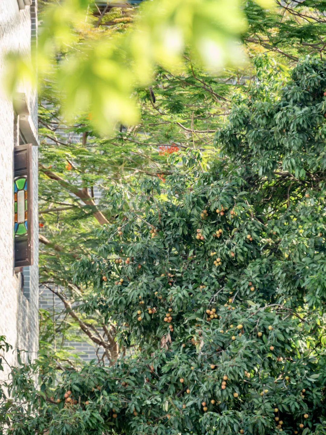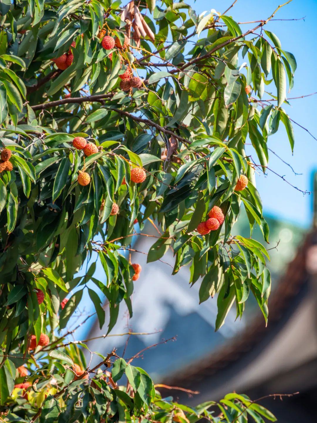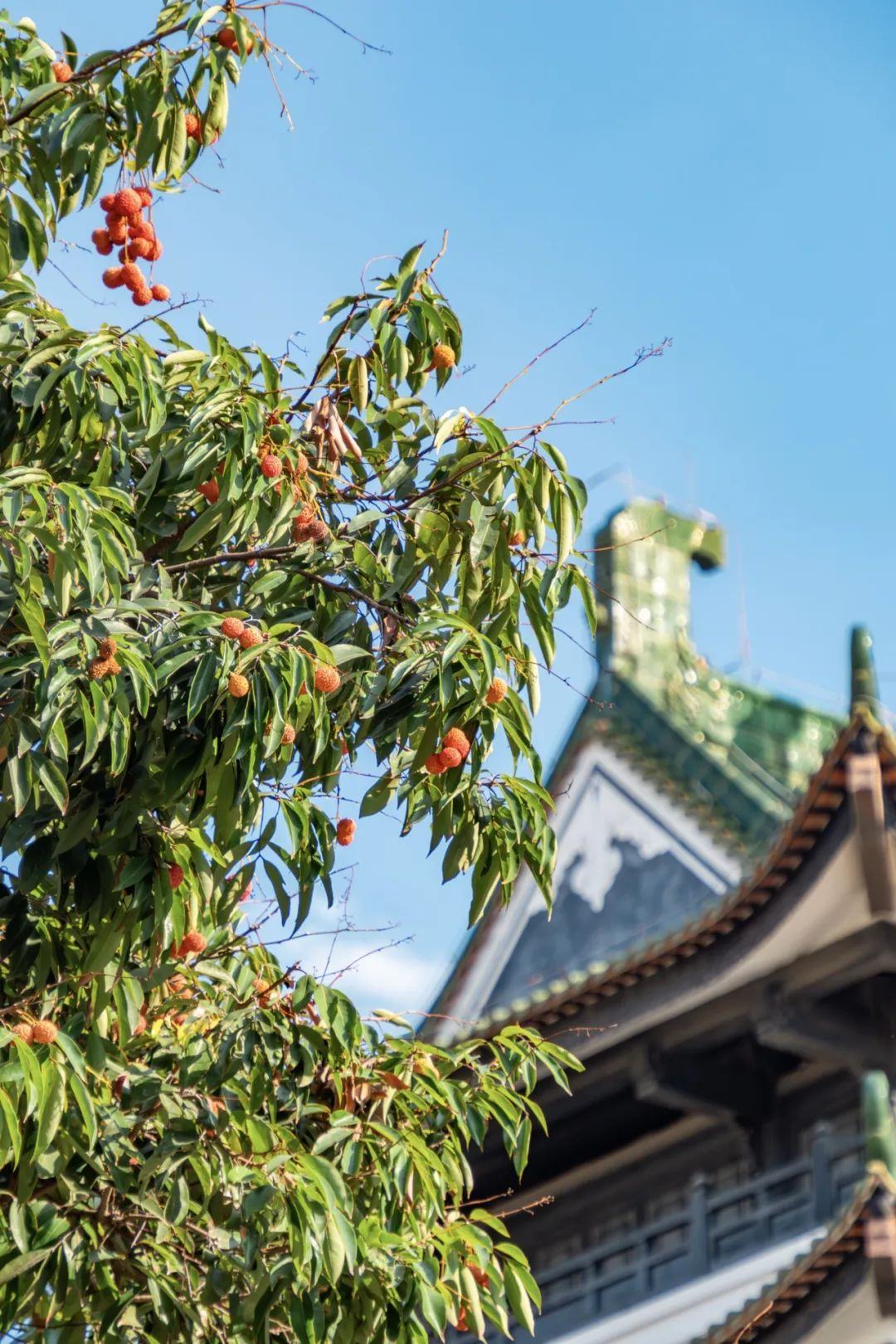 另外,在永庆坊“月亮桥”附近,树梢上已经成熟的荔枝果实,与粤剧艺术博物馆的建筑搭配成古香古色的美景。
