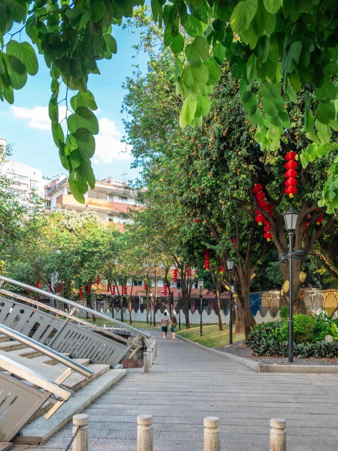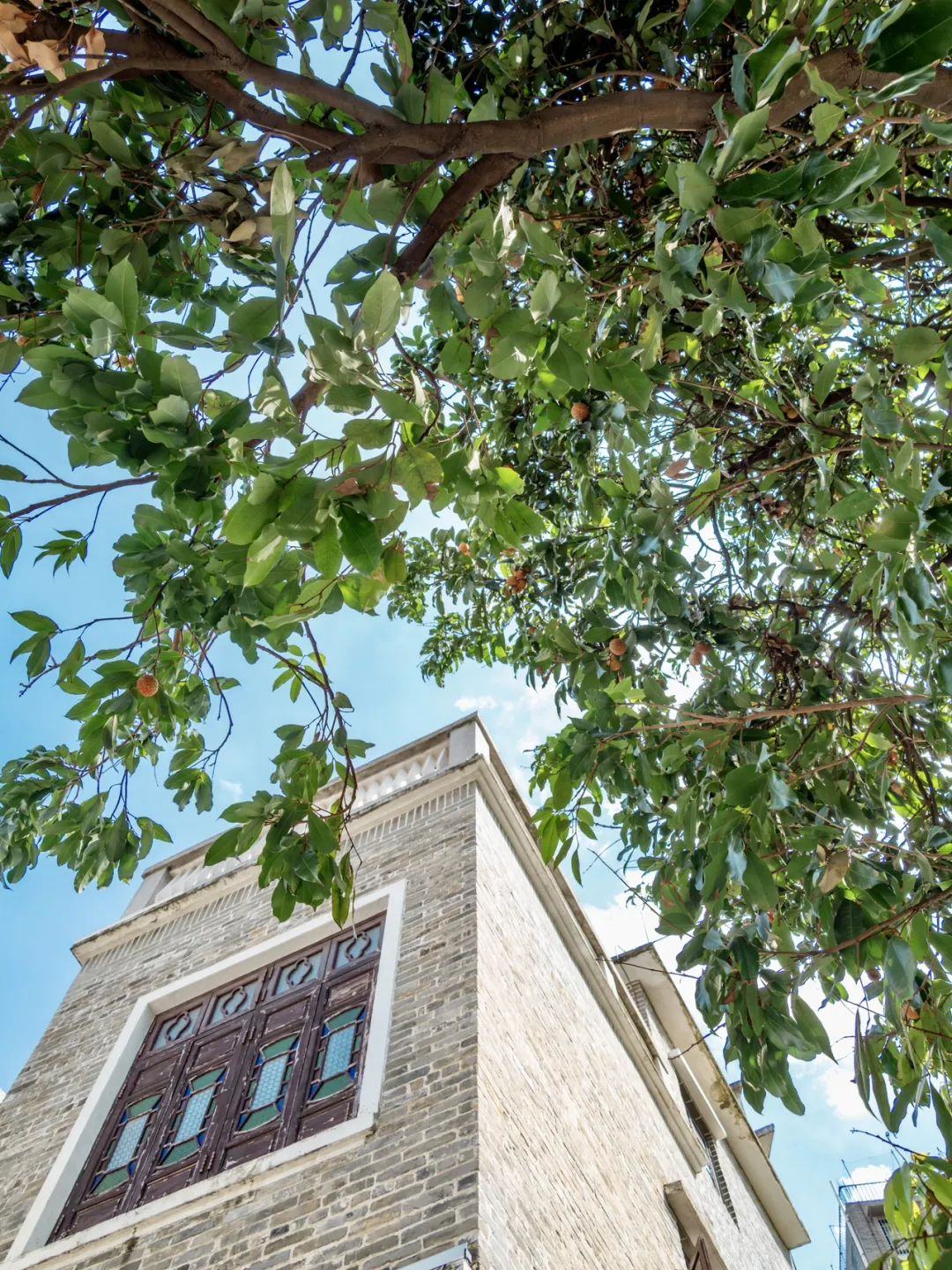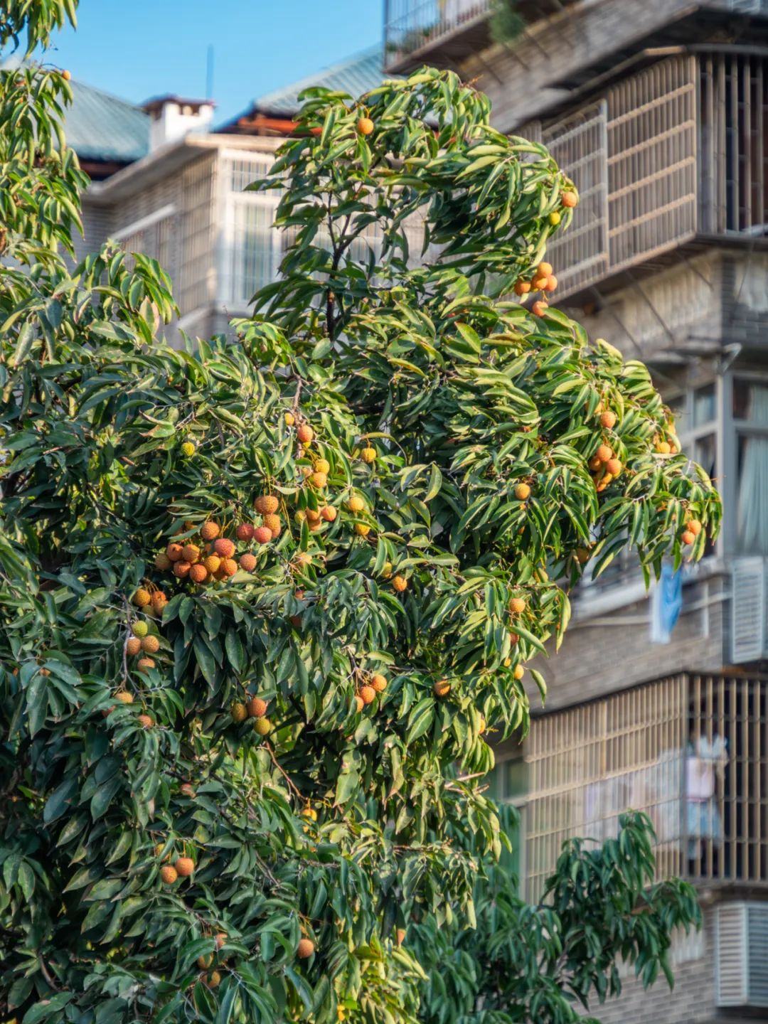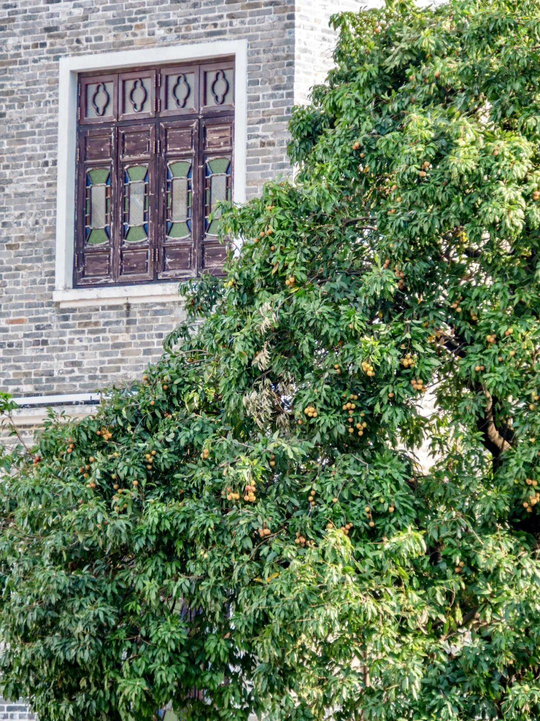 另外,在永庆坊“月亮桥”附近,树梢上已经成熟的荔枝果实,与粤剧艺术博物馆的建筑搭配成古香古色的美景。
