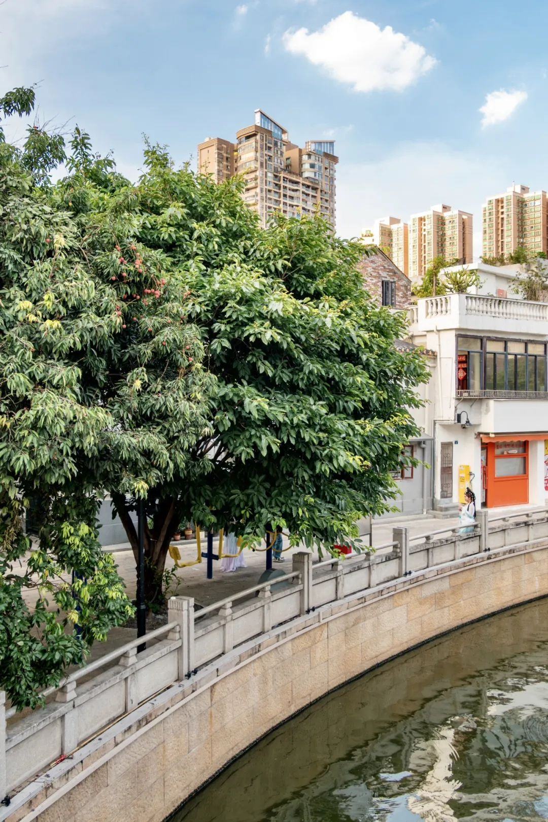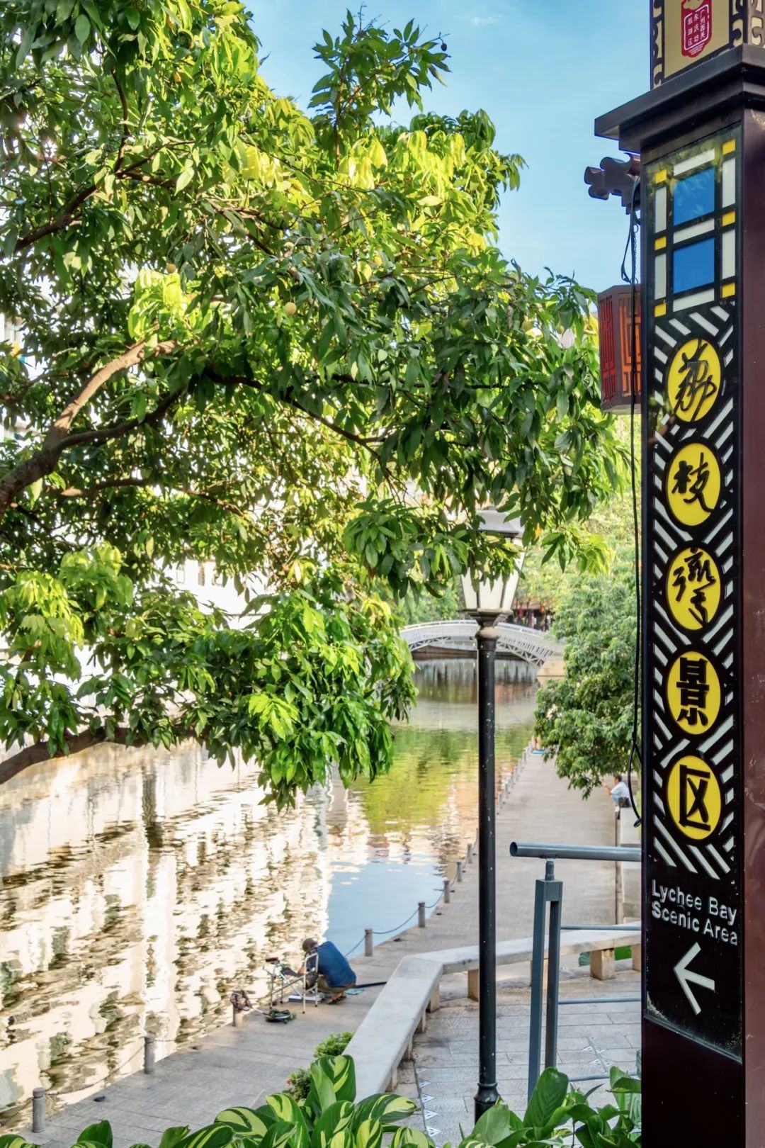 沿荔枝湾涌河岸继续前行,在羽扇桥、时敏桥一带,可以看到路边成排的荔枝树果实正在进入成熟阶段。