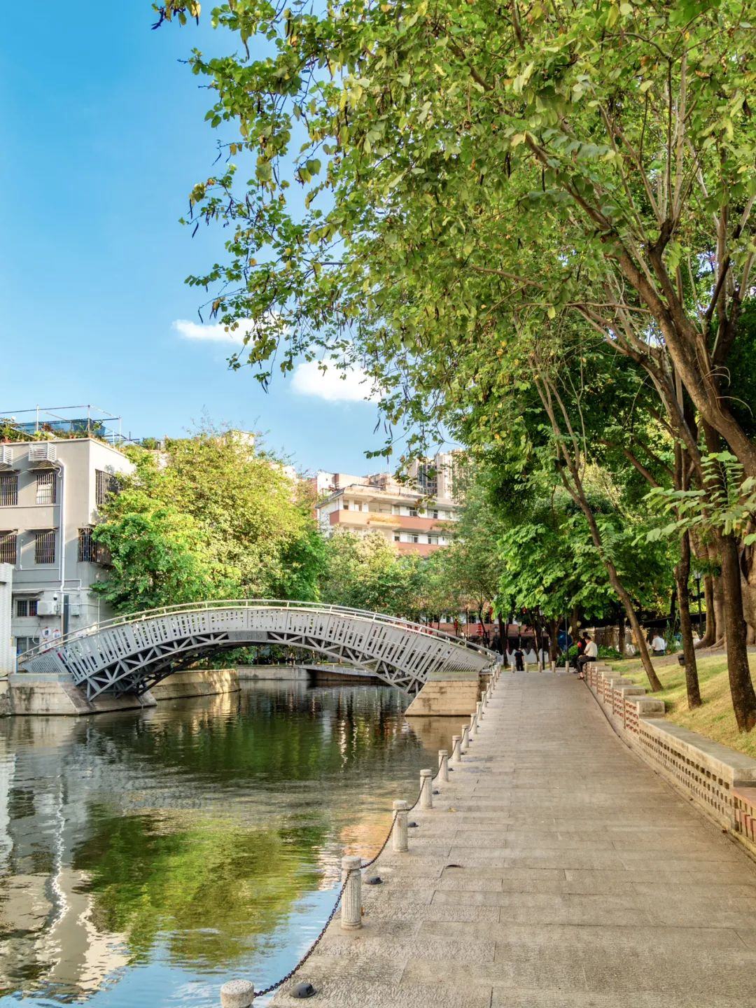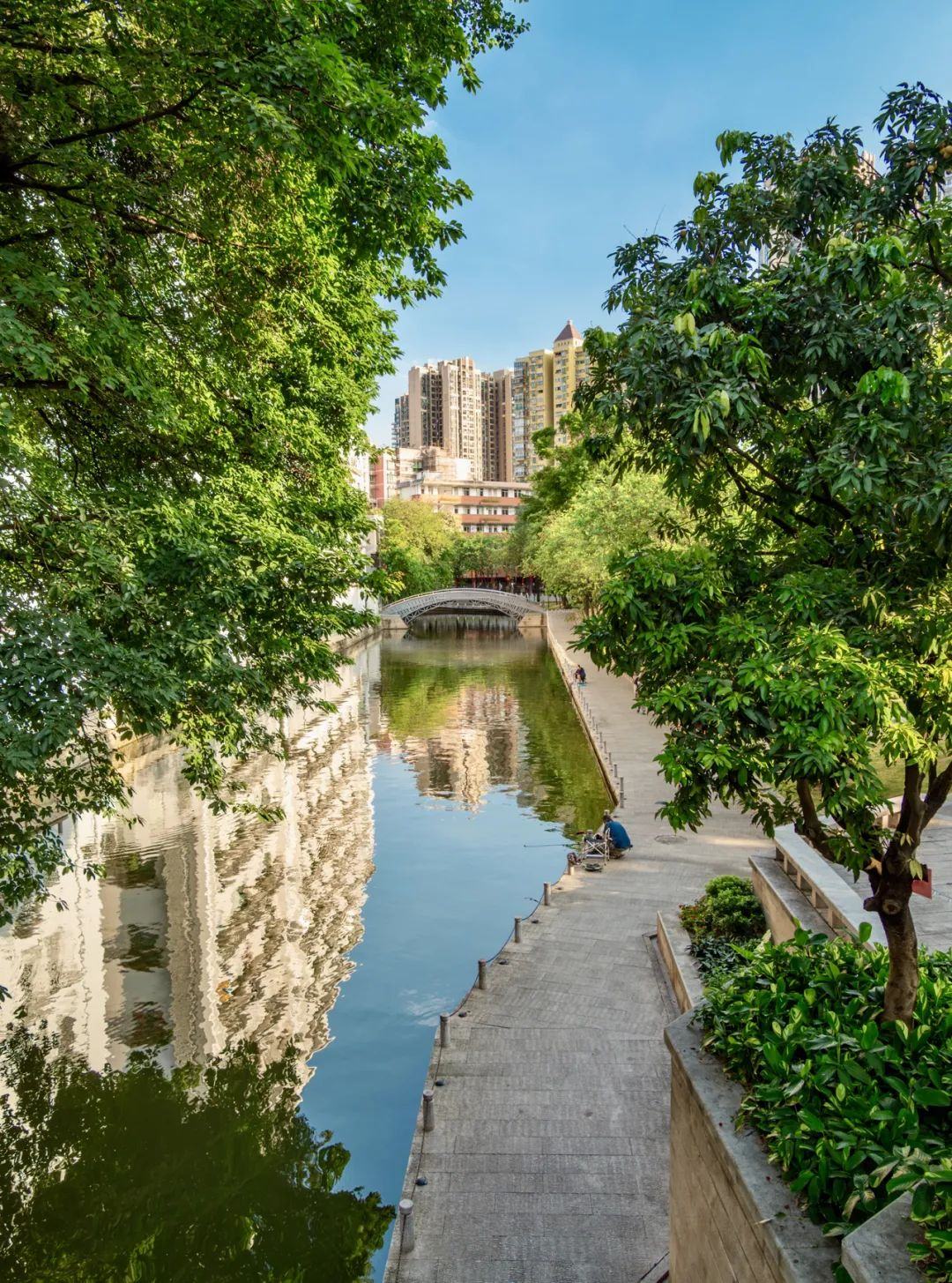 荔枝湾涌两岸绿植茂盛,成为市民休闲的滨水空间。每逢夏季荔枝成熟,沿河岸漫步,“荔香满湾”的美景令人心旷神怡。