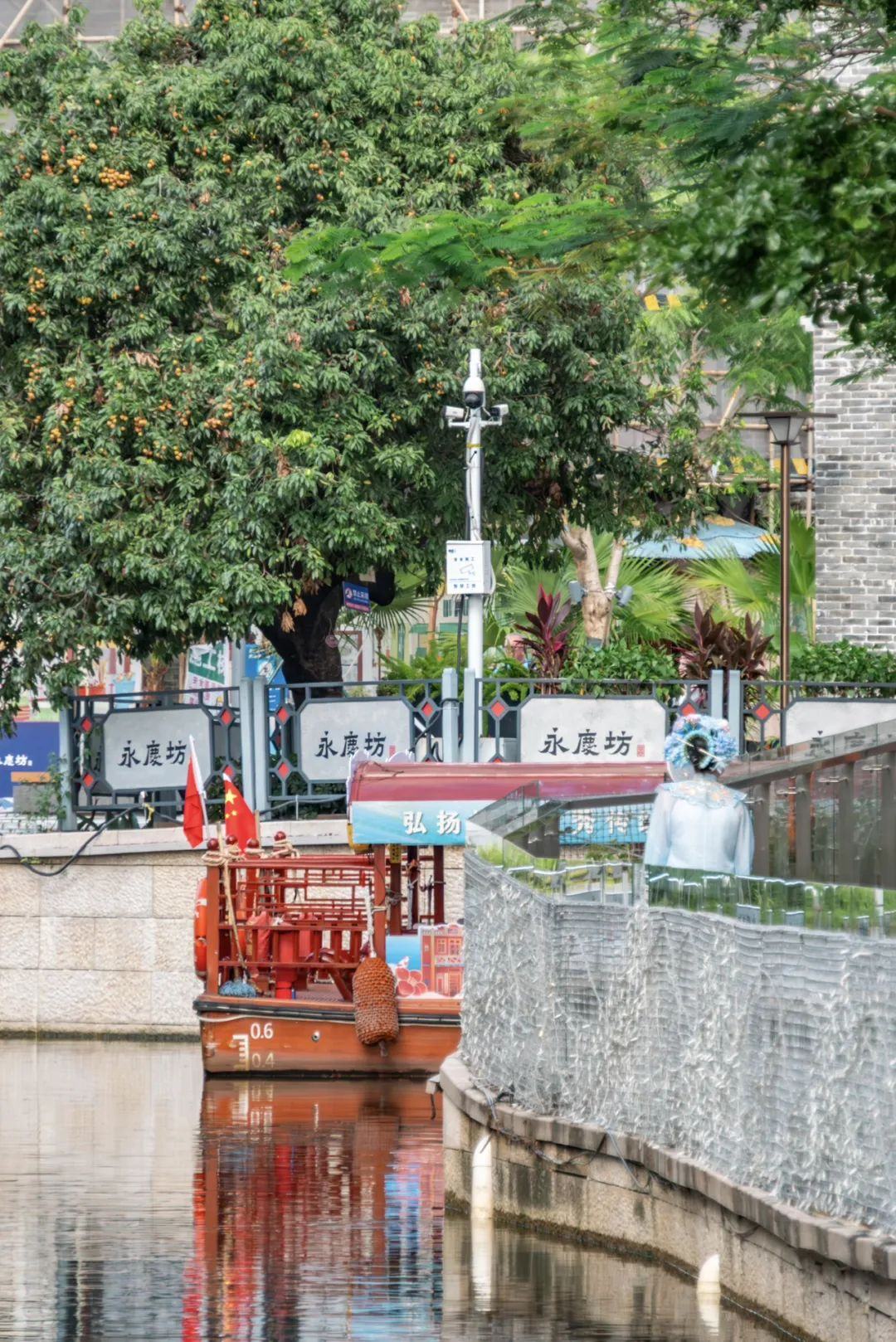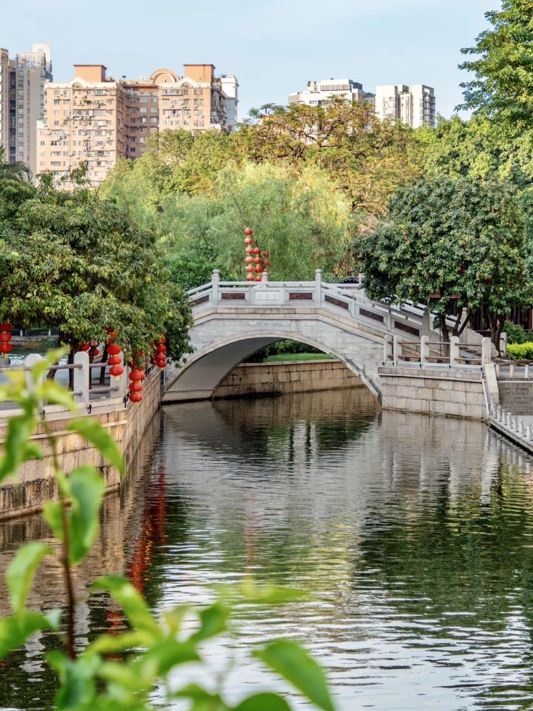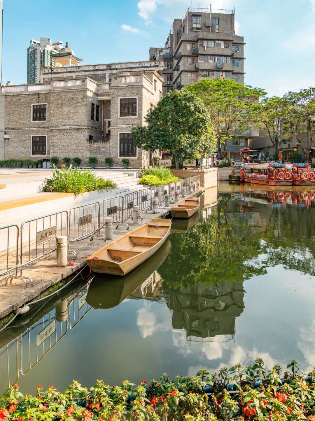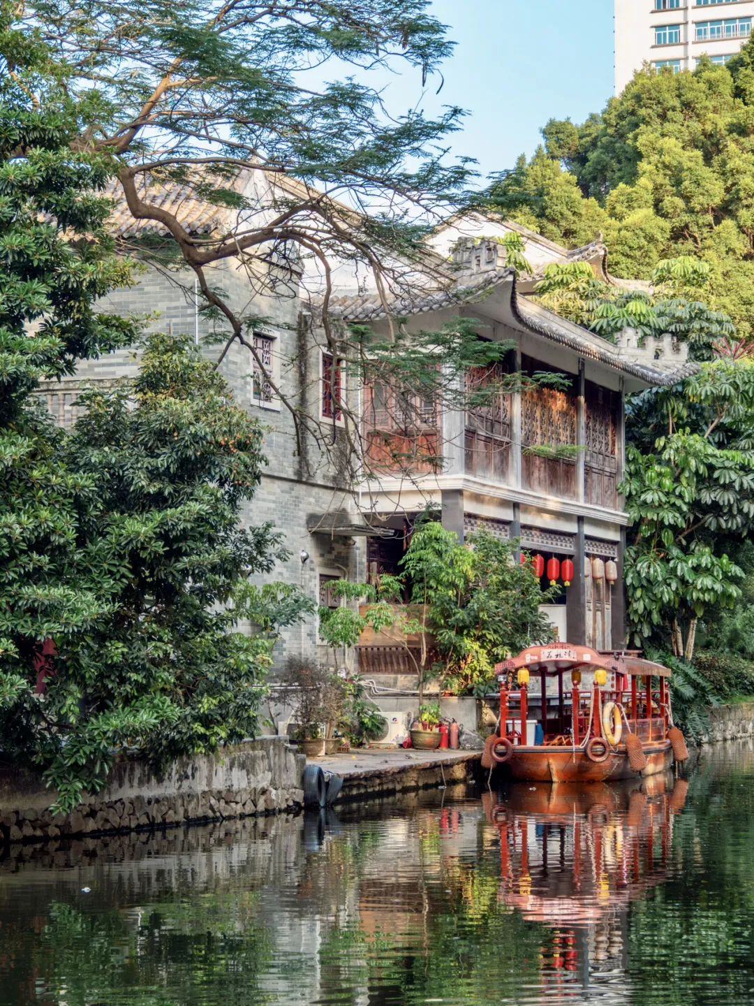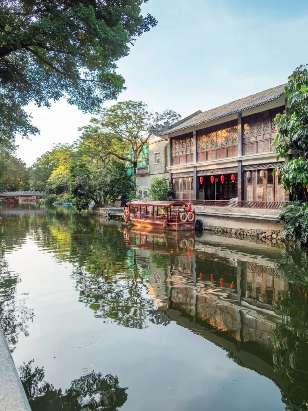 荔枝湾涌河道蜿蜒,拱桥与亭台楼阁倒映水中,游客可泛舟游览全景,感受“小桥流水人家”的岭南水乡韵味。