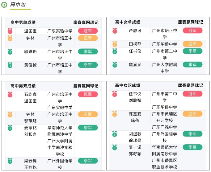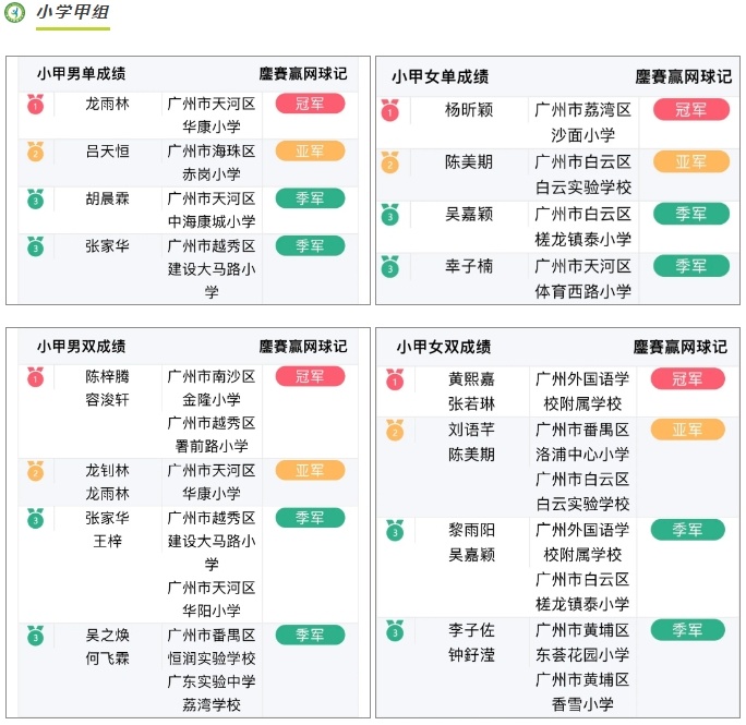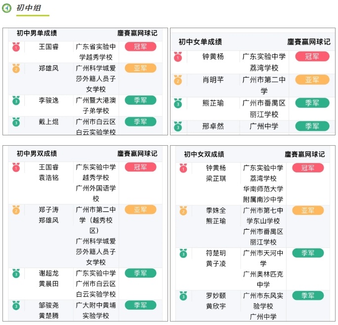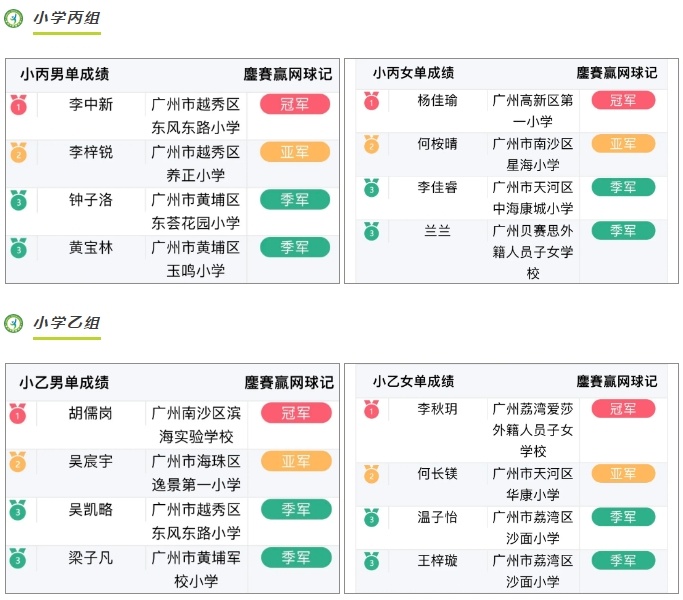 中小学生网球公开赛战绩榜