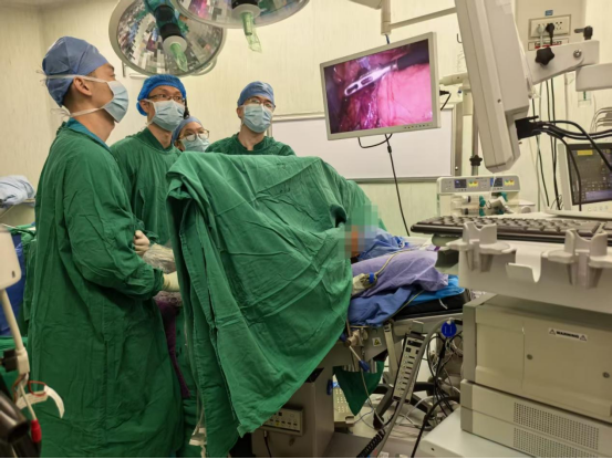 手术当天,疝和腹壁外科范国勇主任凭借丰富的经验和精湛的技术,通过几个微小切口建立操作通道。在腹腔镜的辅助下,他沉着应战,细致谨慎地逐步分离、还纳疝入胸腔的组织,随后对扩大的食管裂孔进行精细修补,并顺利完成胃底折叠。这场与病魔的博弈,在医护团队紧密配合下获得成功。