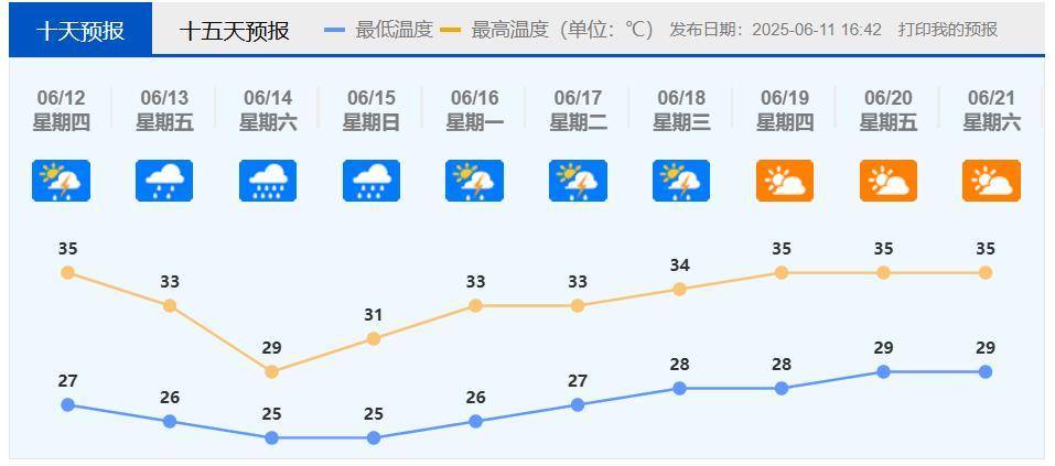 6月7日以来,佛山持续出现高温炎热天气,9日录得最高气温37.5℃。6月12日,佛山有雷阵雨,局地伴有短时强降水和雷雨大风等强对流天气,由于最高气温可达35℃,目前各区高温预警信号仍继续生效。
