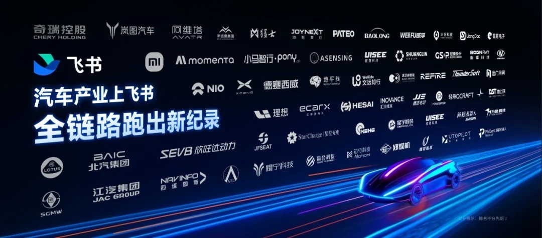 不止是“蔚小理”等头部企业,如今全产业链也在通过“AI+”协同变革。汽车上游领域,数十家头部汽车零部件企业也已开始使用飞书有效提高工作效率。