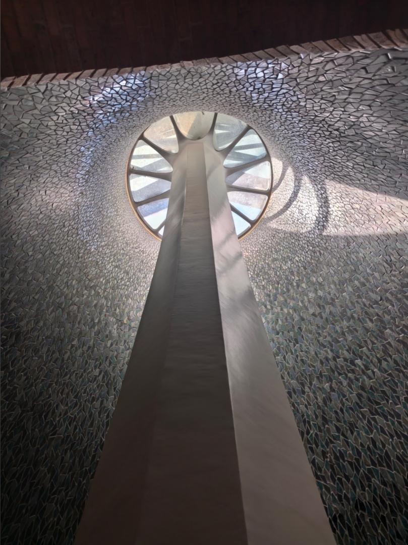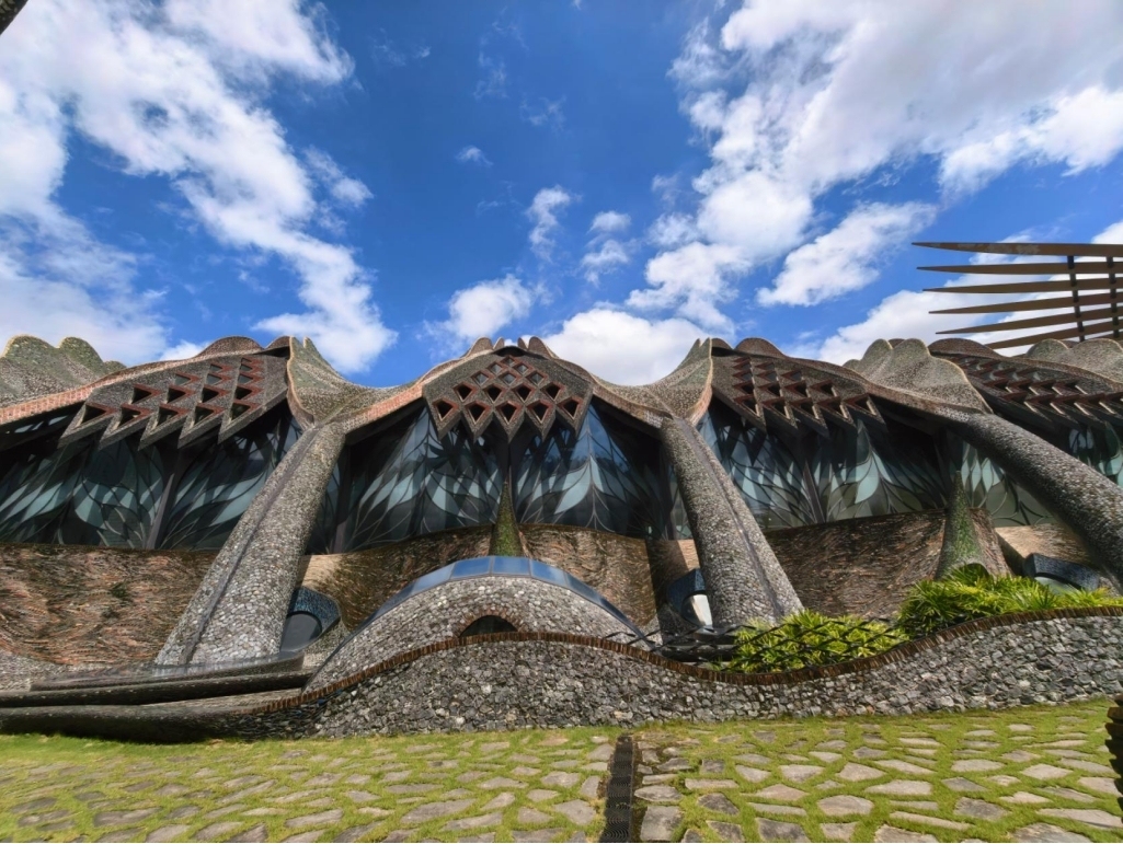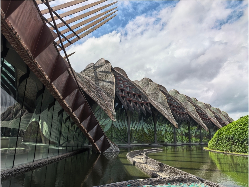 在大浪时尚小镇,调研组一行首先来到位于大浪街道浪静路与一号路交叉处的玛丝菲尔总部。与外部林立工业区形象截然不同,这个名为“玛丝菲尔花园”的园区果然别有洞天。红砖碎石、古朴的多立面几何建筑造型,外形仿似一只昂首的恐龙;入内,宽阔高耸的穹顶又新添几分欧式古堡的味道。一步一景,时尚与艺术气息扑面而来。