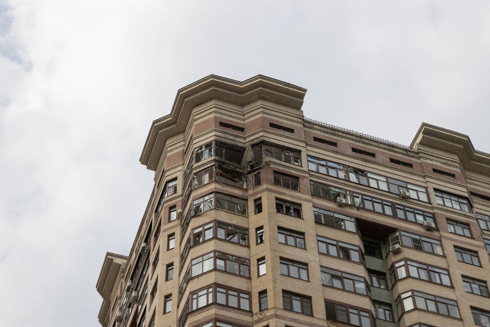 这是3月11日在俄罗斯莫斯科州东南部拍摄的受损住宅楼。新华社记者白雪骐摄