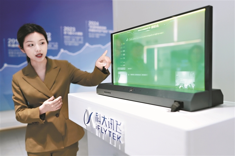 科大讯飞一款名为“多语种AI透明屏对话翻译数字人客服”的新产品。