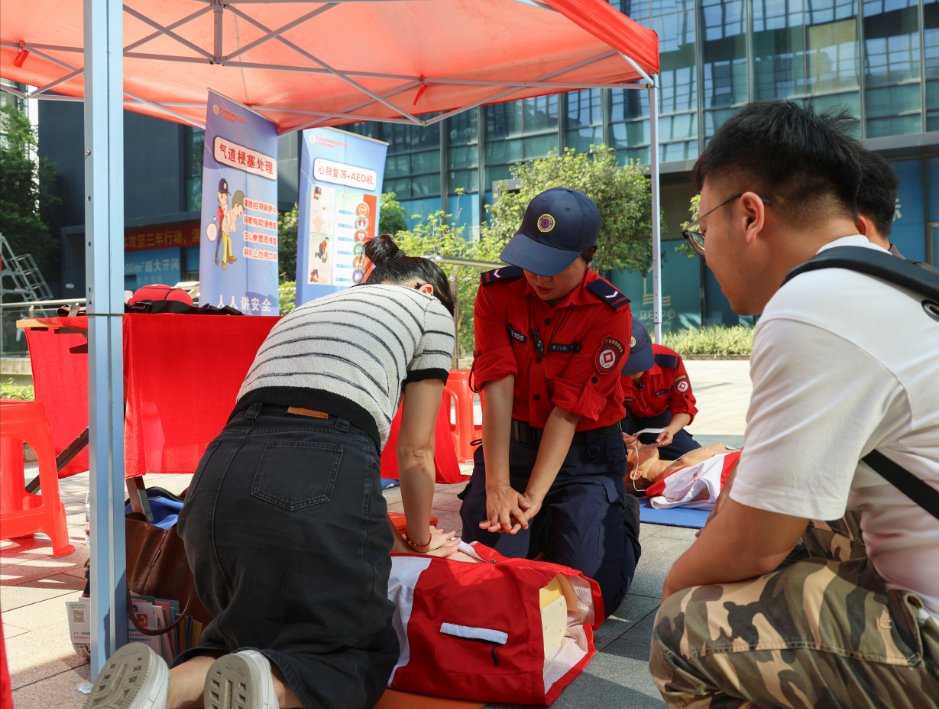 在安全体验区,有关单位专业人员现场教学如何使用灭火器、如何佩戴防毒面罩、如何利用逃生绳索逃生以及如何防溺水等安全常识,并现场体验遇到地震时应如何处置等基本技能。