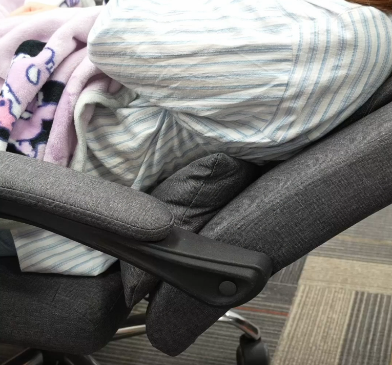 这是办公室里最常见的午睡姿势。但这个姿势易增加腰椎间盘和髋关节压力,造成损伤和疼痛;颈椎处于过度屈曲或旋转姿势,增加落枕的发生风险;手臂长时间受压,易诱发上肢周围神经压迫、出现手麻等症状。