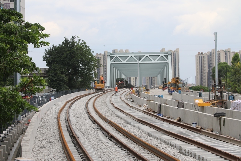 面对严峻挑战,承建单位广铁集团广州工程建设指挥部展现出强大的攻坚克难能力与高效组织水平。建设团队昼夜奋战,不断优化施工组织方案,科学调配资源,强化跨单位、多专业协同作战,施工现场24小时灯火通明、机械轰鸣,最终确保了首列长钢轨安全、精准进场,有效保障长轨运输和铺设进度。