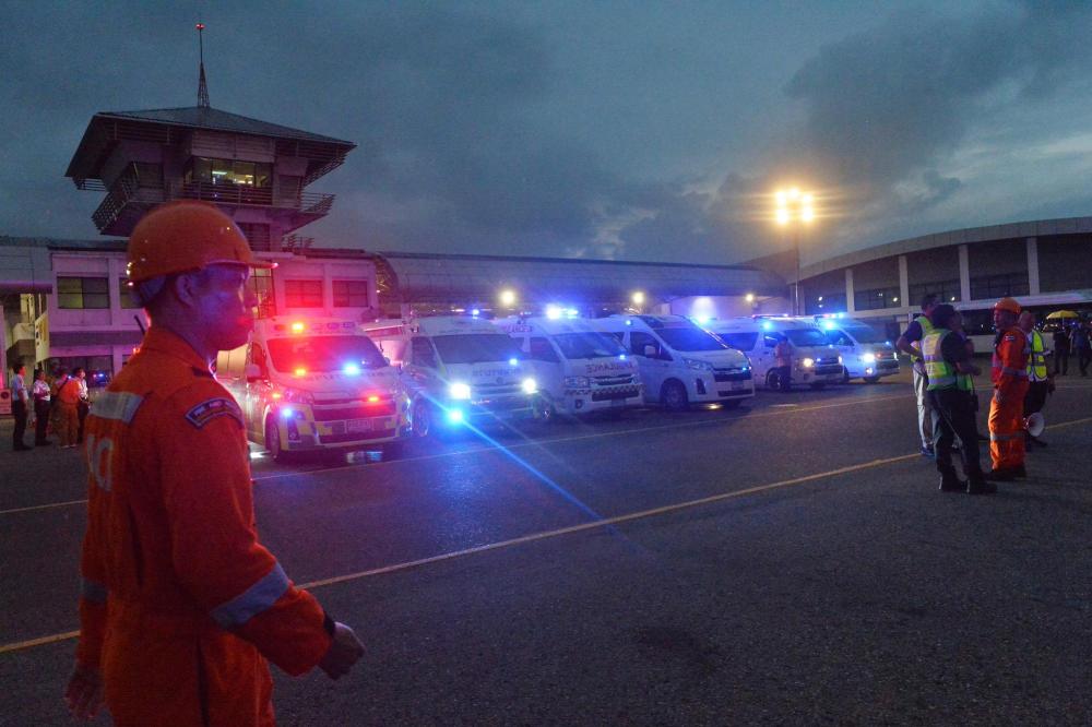 5月21日,救护车聚集在泰国曼谷素万那普机场外。新华社发(拉亨摄)