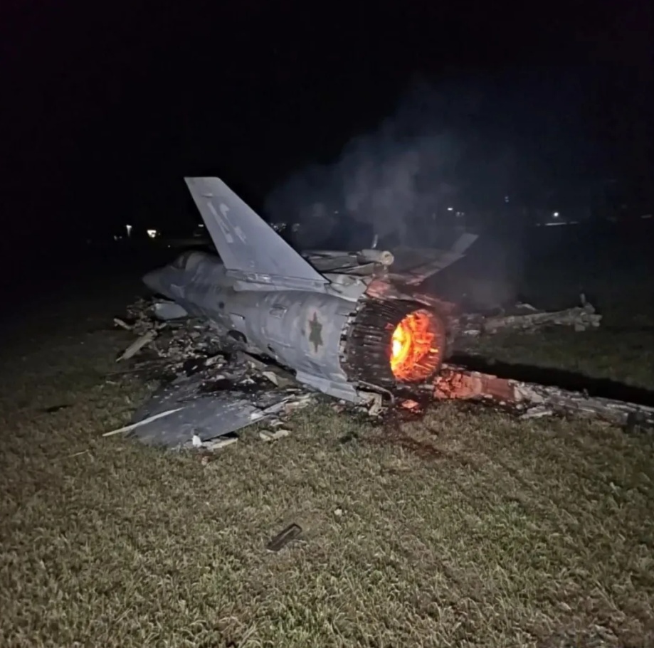 照片于夜间拍摄。照片中,战机残骸仍在燃烧,机上印有以色列空军标志。据伊朗媒体13日晚报道,伊朗防空系统当天击落两架以色列F-35战机,并俘获一名飞行员。