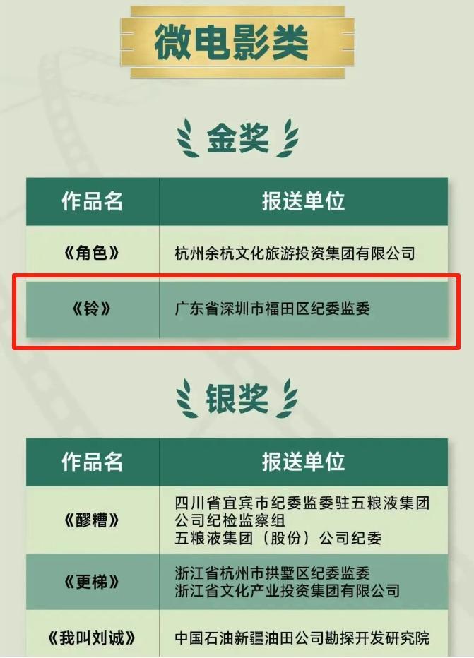 “我们想通过这部影片,警示广大党员干部,面对形形色色的诱惑,必须让心中的‘警铃’长鸣不绝,坚决守住纪法底线。”福田区纪委监委相关负责同志说,“捧得金奖,我们倍感振奋。这份荣誉是鼓励,更是动力,将继续聚焦廉洁主题,用心用情创作更多富有感染力、传播力的好作品,持续擦亮‘清廉是福’廉洁文化品牌。”