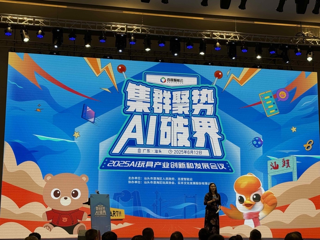 日前,由汕头市澄海区人民政府、百度智能云主办,澄海玩具协会与实丰文化发展股份有限公司(以下简称实丰文化)协办的2025AI玩具产业创新和发展会议在“中国玩具礼品之都”澄海开幕。大会以“集群聚势·AI破界”为主题,汇聚全球AI技术厂商、知名IP方及产业链上下游伙伴,共探AI玩具的生态构建与创新发展路径,加速传统玩具制造向高端智造转型升级。