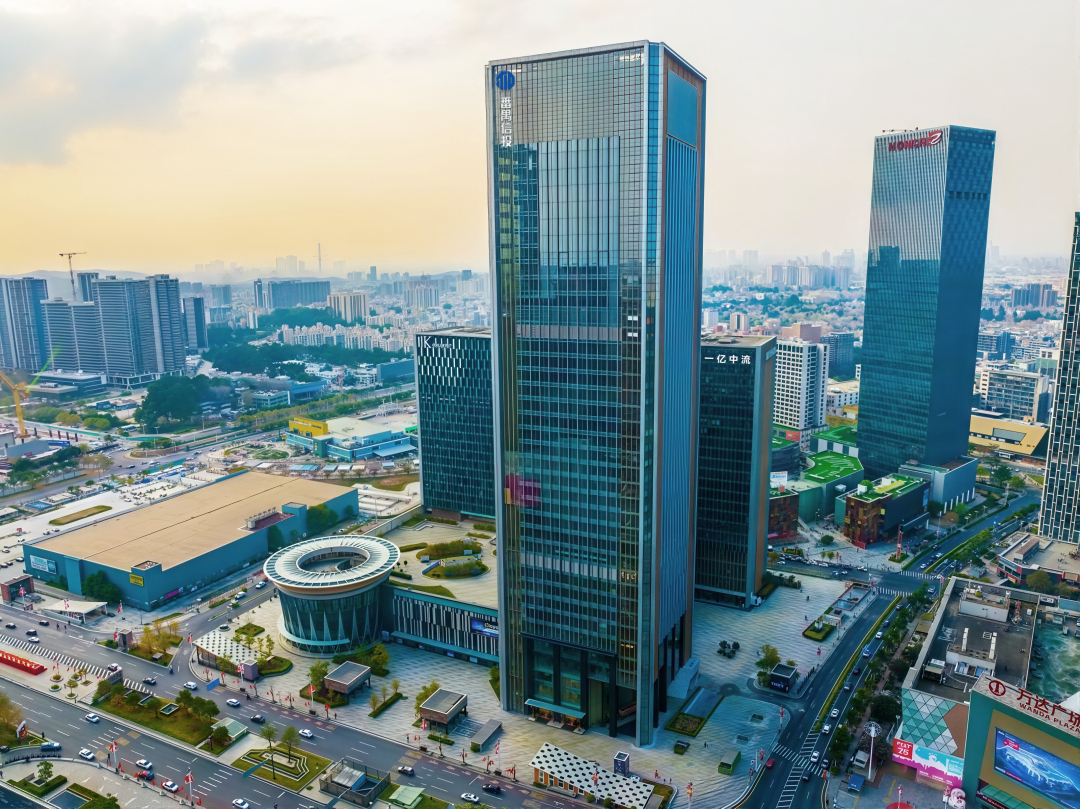 创新发展动能:融入科技感线条、数字化光影、数据流等元素,象征智慧CBD、数字经济活力和作为“湾区引擎”的驱动力,体现引领消费升级、产业创新的雄心。