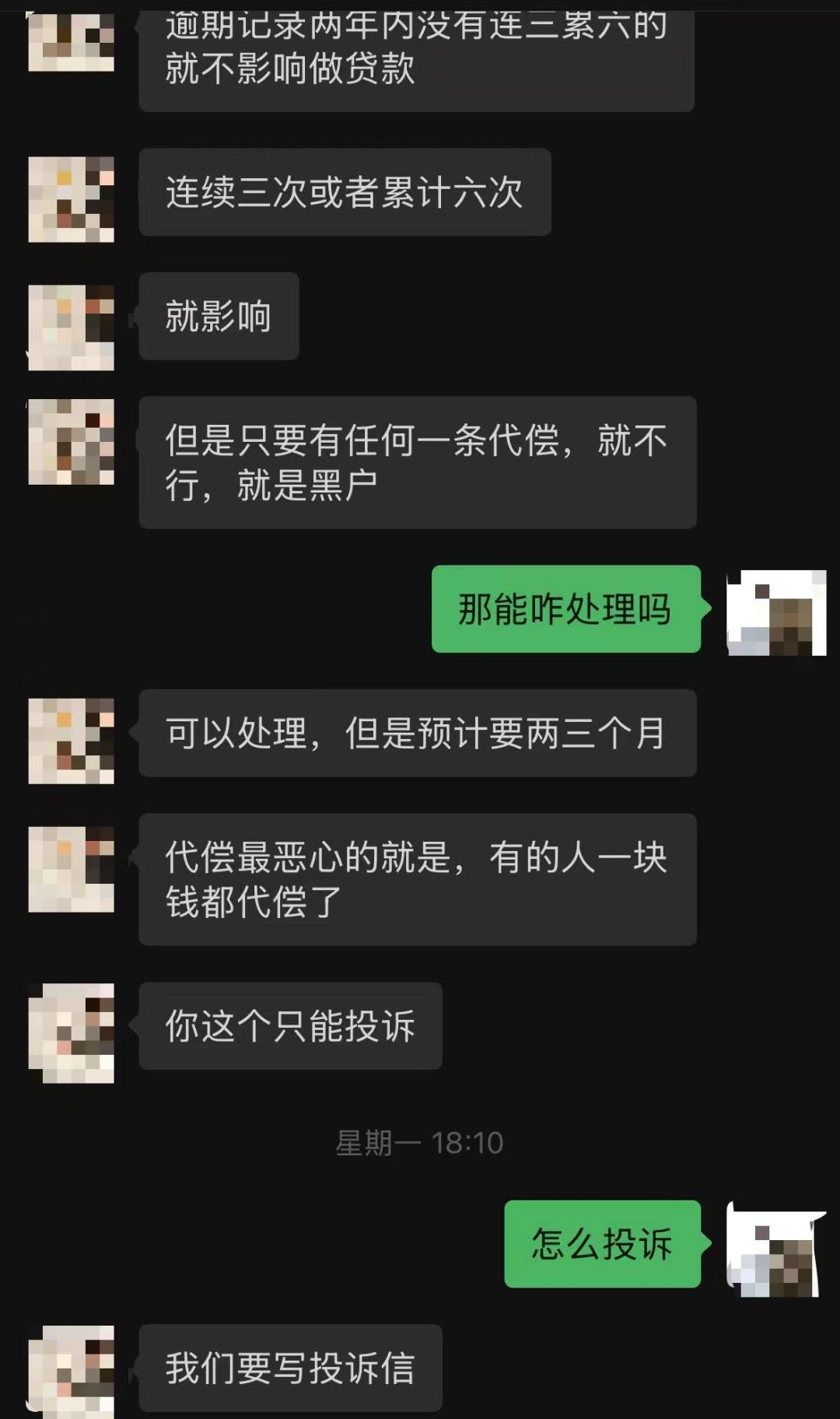 (一位中介表示会通过“写投诉信”来进行“征信修复”)